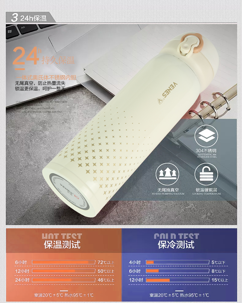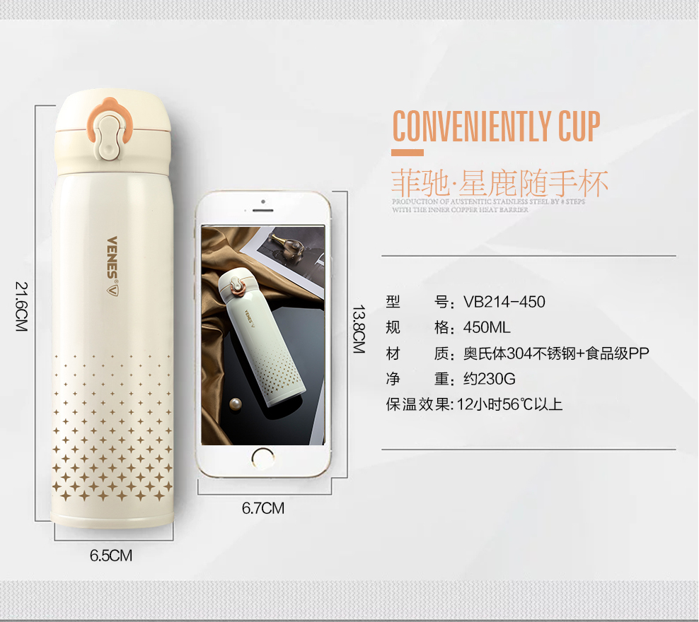 菲馳304不銹鋼500ml保溫杯