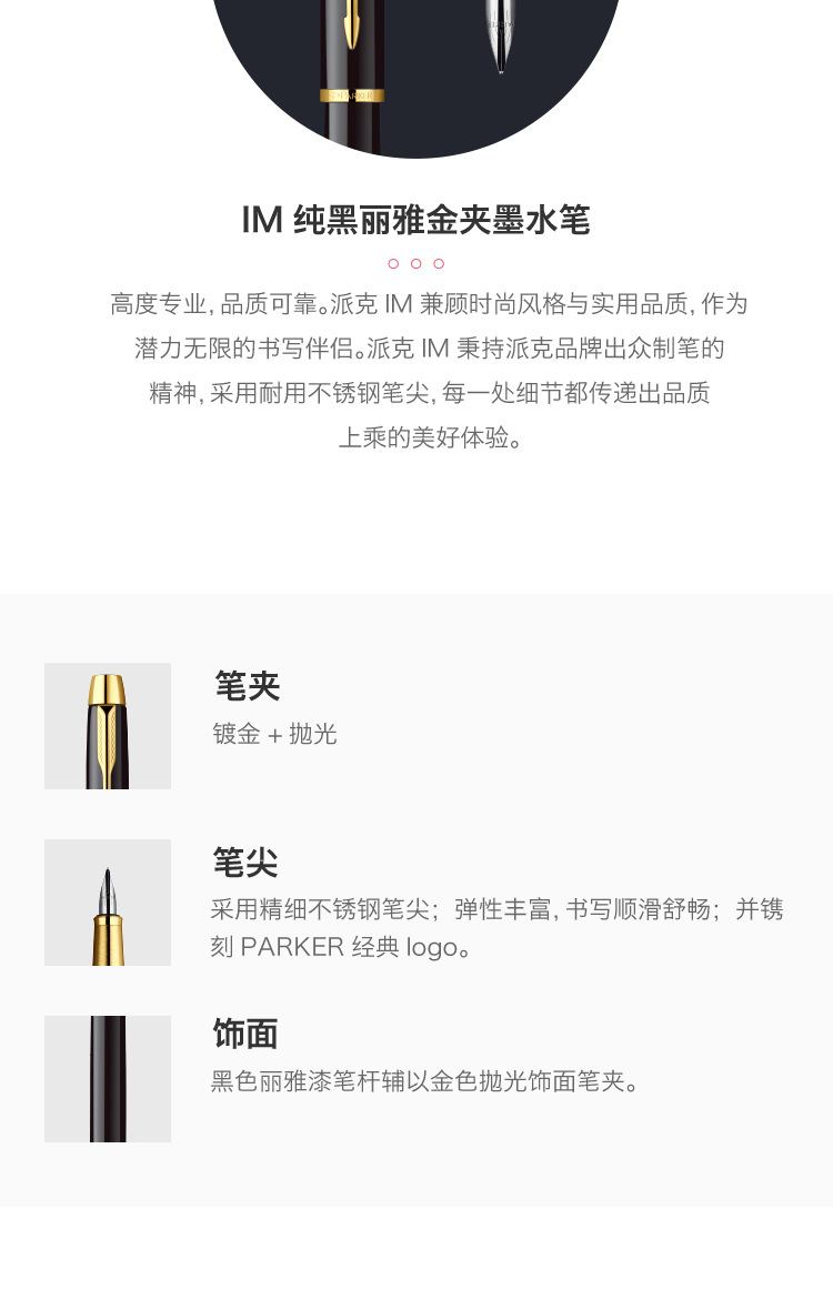 派克IM純黑麗雅金夾墨水筆