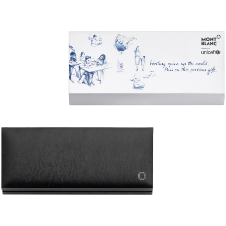 每一支萬寶龍大班系列UNICEF書寫工具的銷售款中都會分出一部分捐贈給UNICEF。該設計靈感源自羅塞塔石碑(Rosetta Stone),這是一塊制作于公元前196年、幫助世人破譯古埃及象形文字的古老石碑。