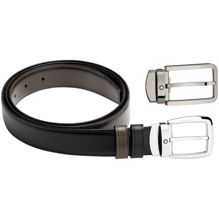 此精美禮品旨在紀念周年慶及特殊場合,彰顯時尚和優雅風范。皮帶禮品套裝由2個帶扣(梯形精鋼帶扣和PVD鍍釕矩形帶扣)、1條可翻轉皮帶(一面純黑色,另一面深棕色皮革30毫米)組成。