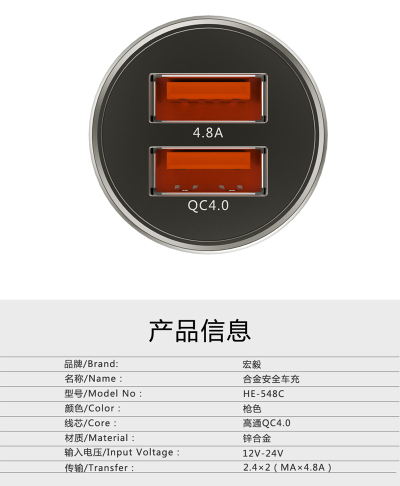 安全錘雙口車充