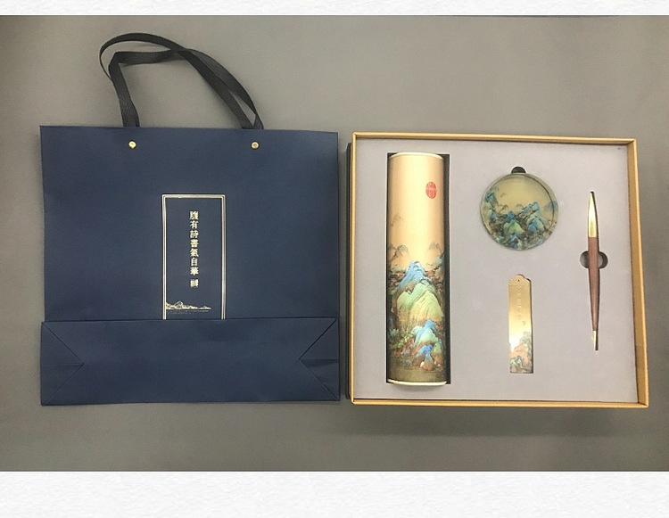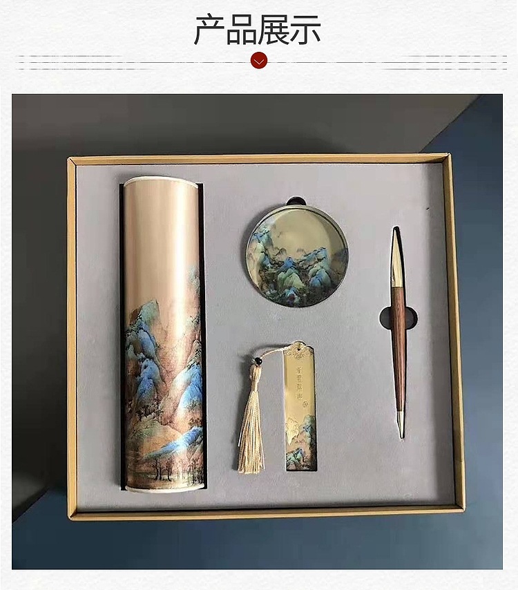 (故宮多功能絲綢墊+香盒+銅木筆筒+簽字筆/鋼筆)