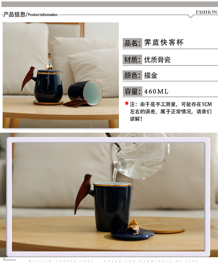 陶瓷水杯茶水分離杯個人辦公泡茶杯