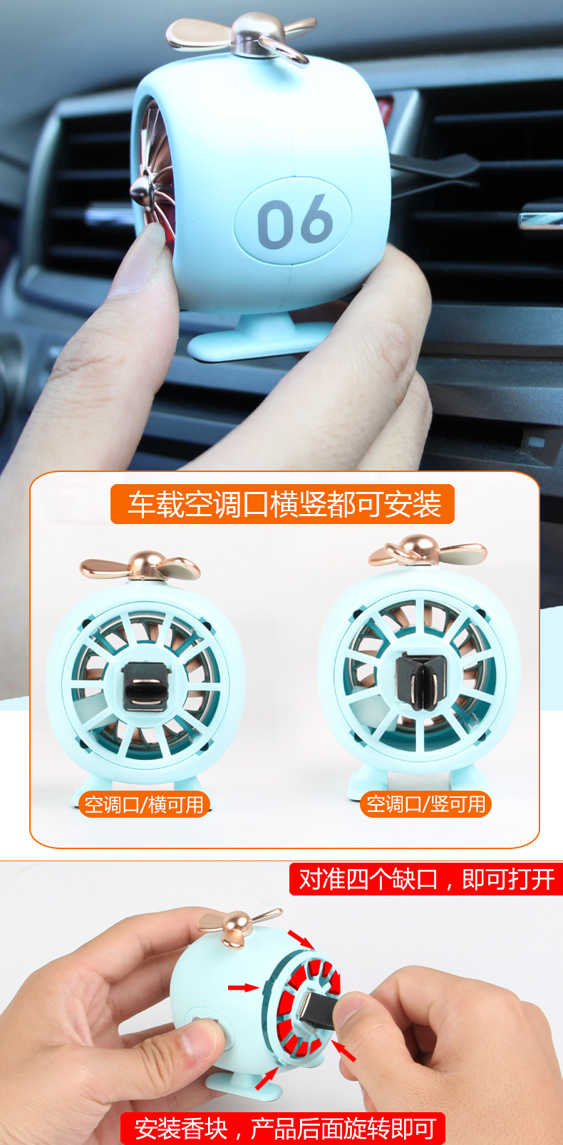 創意直升機車載香熏擺件