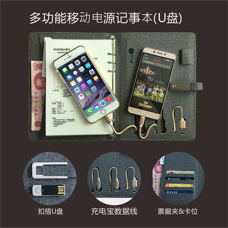 【配置】:記事本100頁書寫紙 移動電源 自帶數據線 U盤
