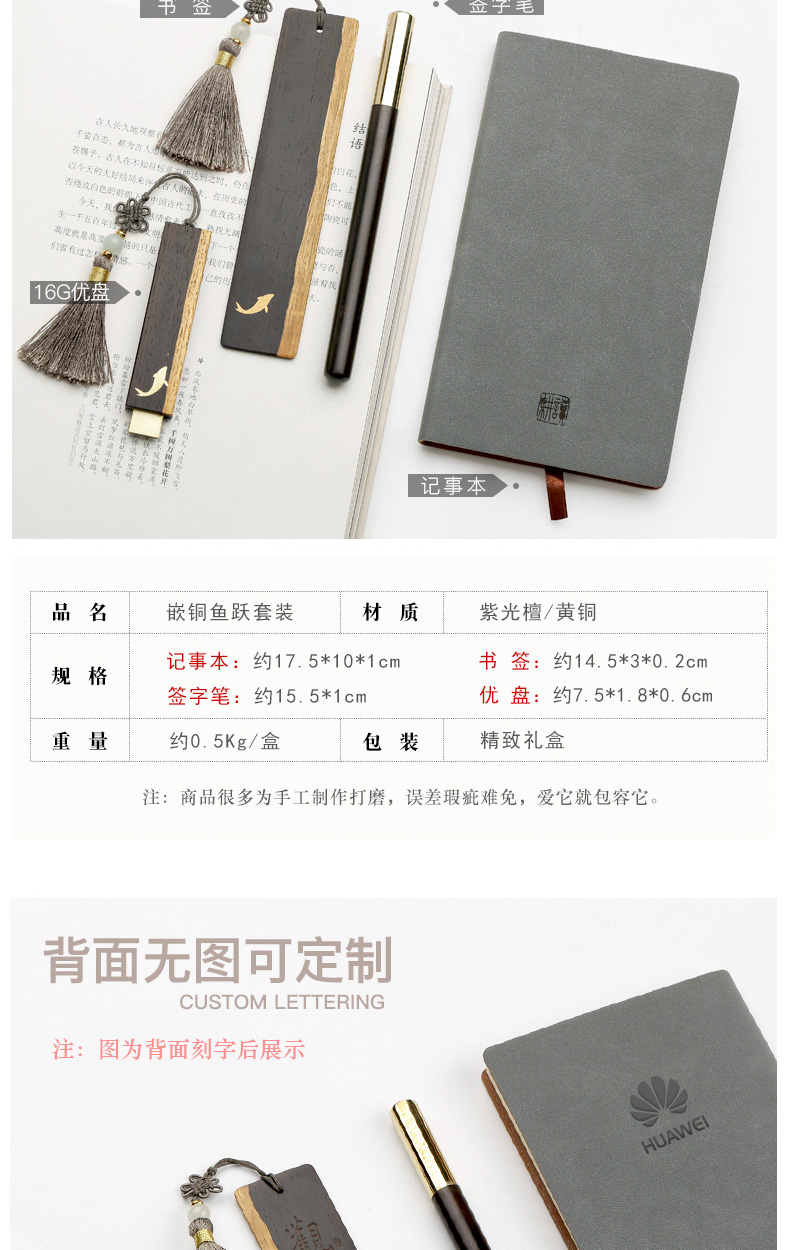 紅木 簽字筆U盤簽記事本套裝